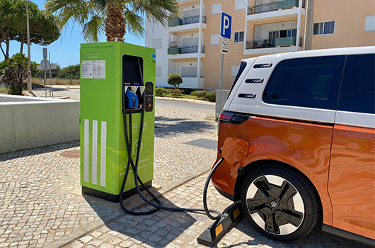 Para carregar a ID. BUZZ Pro pode usar os muitos postos de carregamento espalhados pelo país. Para ter uma ideia real, num posto público ou Wallbox até 11 kW precisará de aproximadamente 7h 30 min para carregar totalmente dos 0 aos 100%. Já num posto de carregamento rápido até 170 kW precisará de apenas de 30 min para carregar dos 5 aos 80% da bateria.