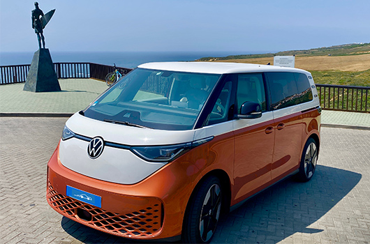 Esta ID. BUZZ, apesar de manter um ar retro inspirado no famoso “Pão de Forma”, nesta versão elétrica apresenta um aspeto mais moderno e vanguardista. O logotipo grande da VW destacado na frente e a iluminação LED á frente e atrás oferece-lhe uma identidade especial. Há mesmo quem afirme que esta carismática ID. BUZZ parece estar a “sorrir”.
