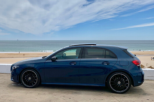 If you look for the exterior from this Mercedes A class , you will surrender to its elegant exterior lines inspired by the Mercedes CLA. It has a magnificent panoramic roof, which offers a special light to the interior, has tinted windows and black 19-inch AMG multi-spoke alloy wheels, which offer an elegant and sporty look to this car.