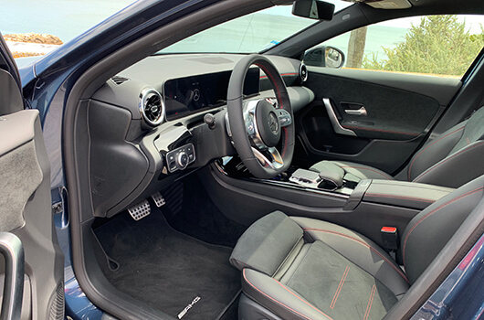 The Mercedes A class with AMG line and a seven-speed dual-clutch automatic transmission - 7G-DCT, is a compact Premium model that conquers you from the first moment. It has a magnificent panoramic ceiling and MBUX infotainment system.