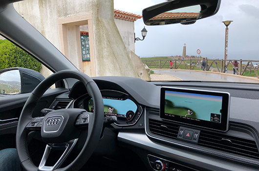 Os automóveis Audi Q5 da nossa frota vêm também equipados com faróis Matrix LED, que proporcionam uma luz de qualidade muito superior. Em conjunto com o sistema de câmaras do carro que detetam veículos próximos, os faróis adaptam-se rapidamente á situação.